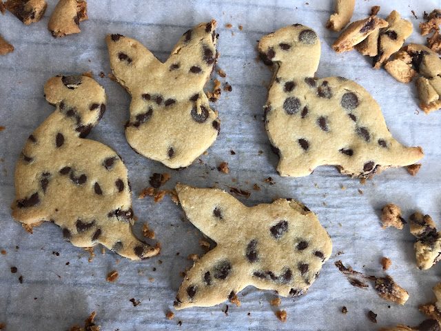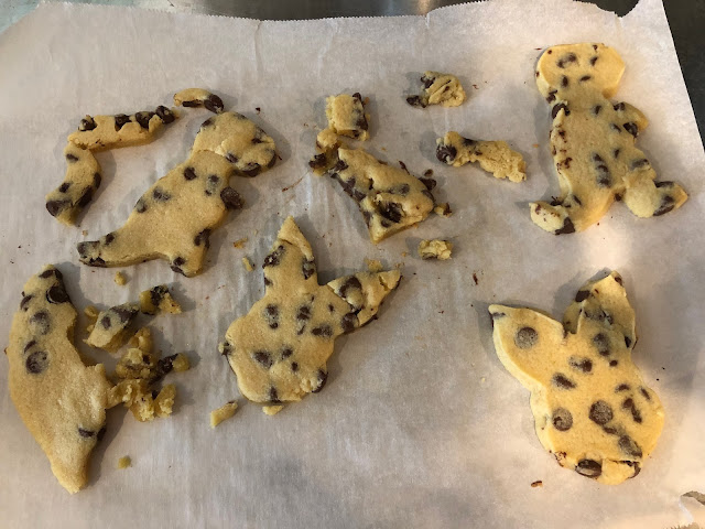 Halloween has never been a huge deal in our family, even when the kids were small. They dressed up for the first few years because really, they had no choice, but after that, their interest was pretty limited. For Layla and Aiden, Halloween has consisted of dressing up and joining the throng at Windward Mall; yet another thing that the pandemic has put a halt to. Neither of the kids are candy eaters but Aiden (and Layla's parents) are fond of cookies. I wasn't in the mood to deal with decorating cookies but I did want them to be a little fun--I decided to play with using cookie cutters on chocolate chip cookie dough.